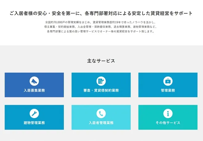 外国人入居者向けの多言語対応サービスや、オンライン相談、土日営業、24時間管理サポートなど、柔軟なサービスを提供しています。