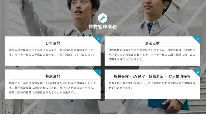 | 事業内容 | プロパティマネジメント事業全般 プロパティマネージャーによる「一般管理」「サブリース管理」の提案 |